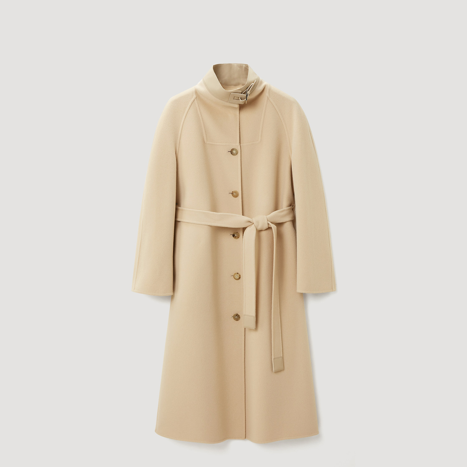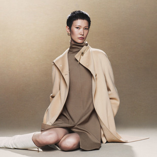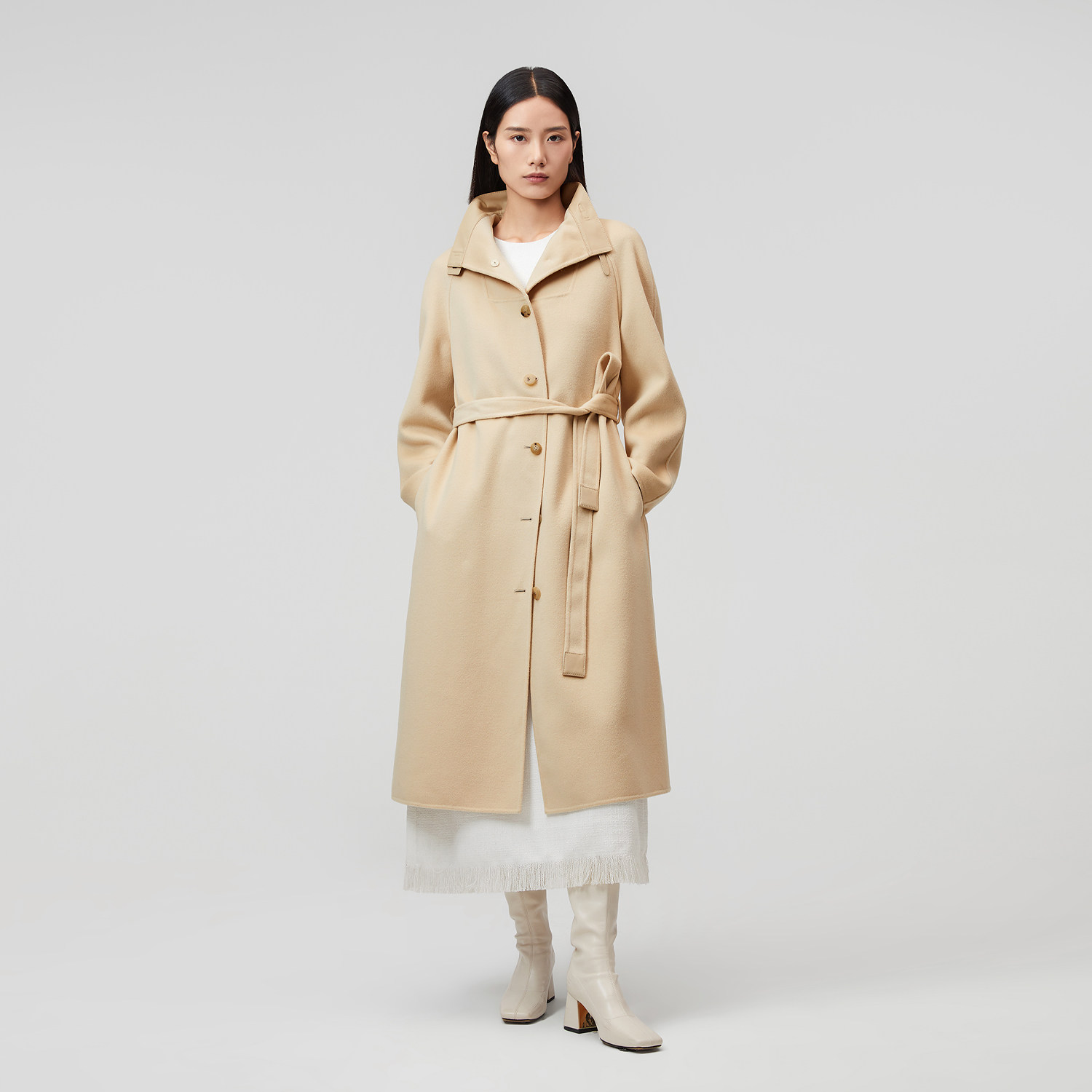 大衣 领口拼小羊皮设计配腰带单排扣长款 OVV秋冬热卖 女装