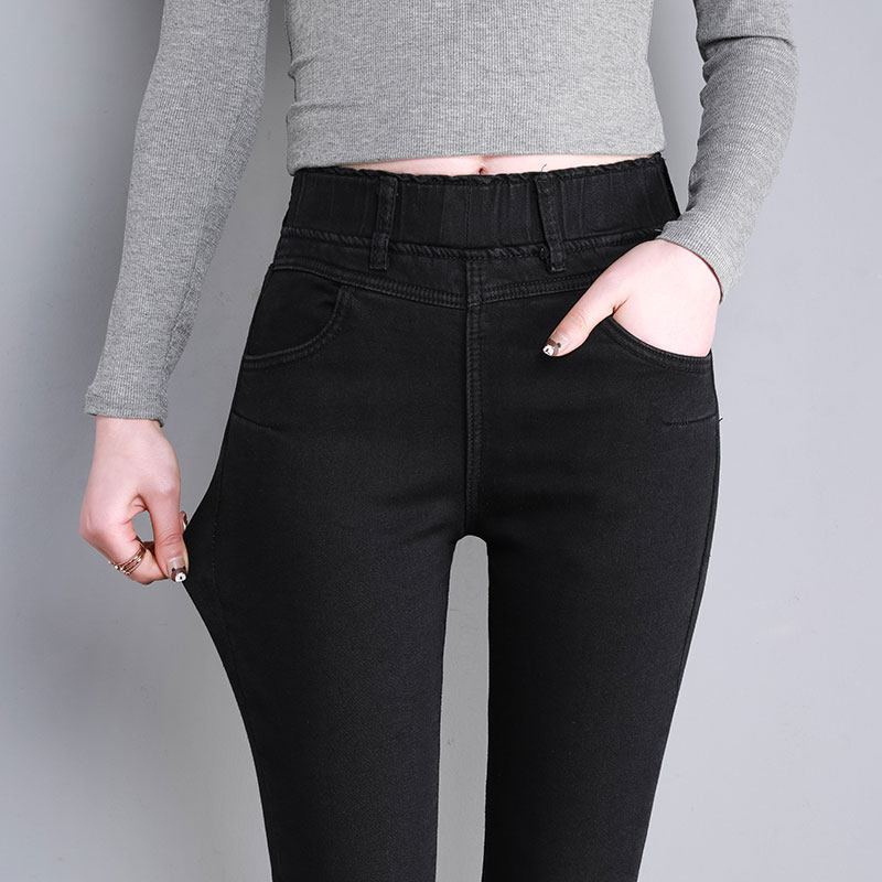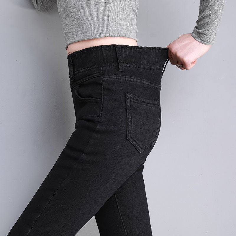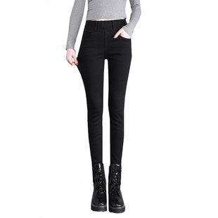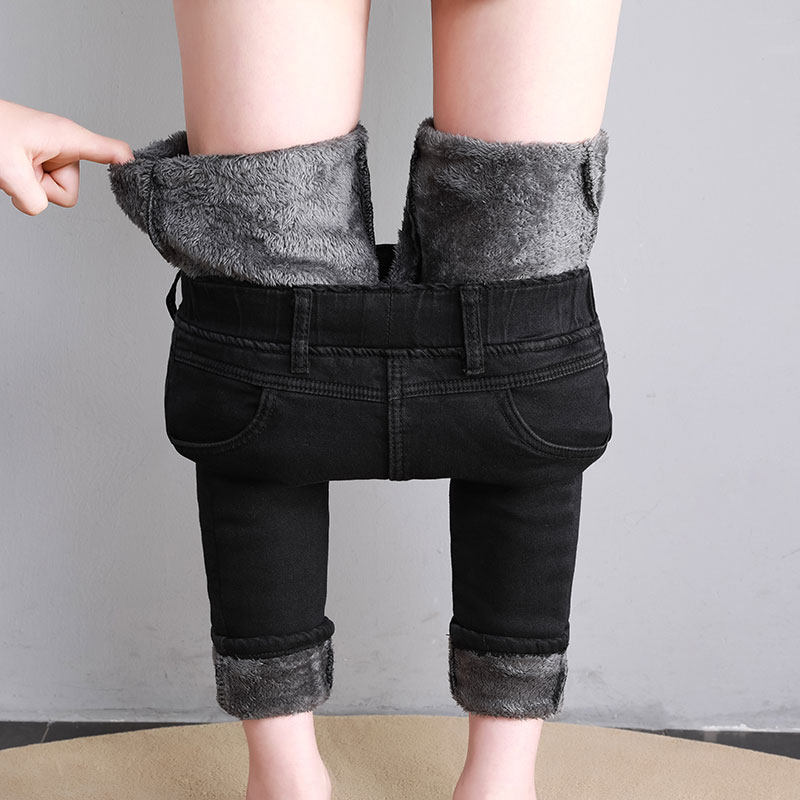 加厚羊羔绒保暖显瘦紧身小脚裤 大码 女2025年冬季 松紧腰加绒牛仔裤