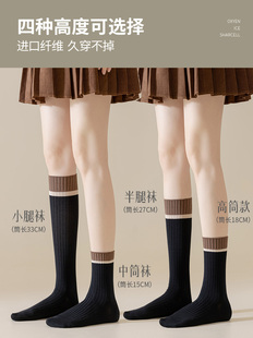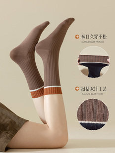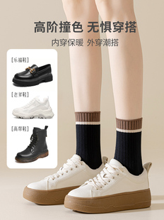 配小皮鞋 袜子女中筒袜纯棉秋冬黑色日系复古条纹长袜2025新款 爆款