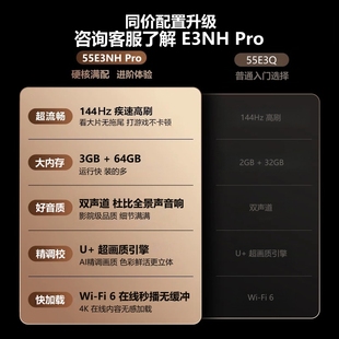 液晶家用以旧换新补贴 AI智能高刷MEMC防抖 海信电视55E3Q 55英寸