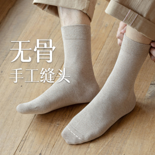 高质量纯棉中筒袜子男春秋款 100全棉吸汗防臭10a抗菌运动长袜无骨