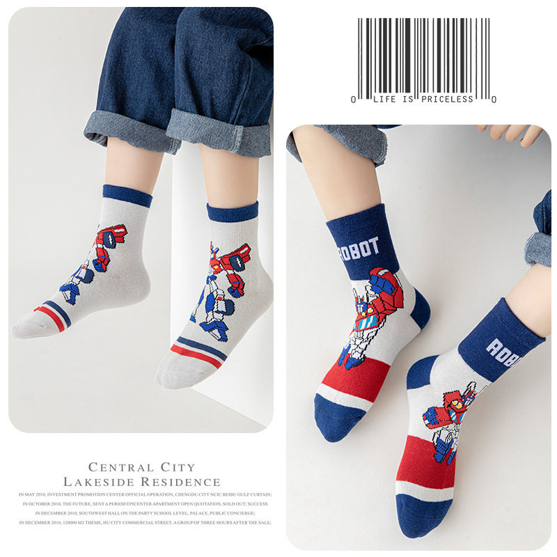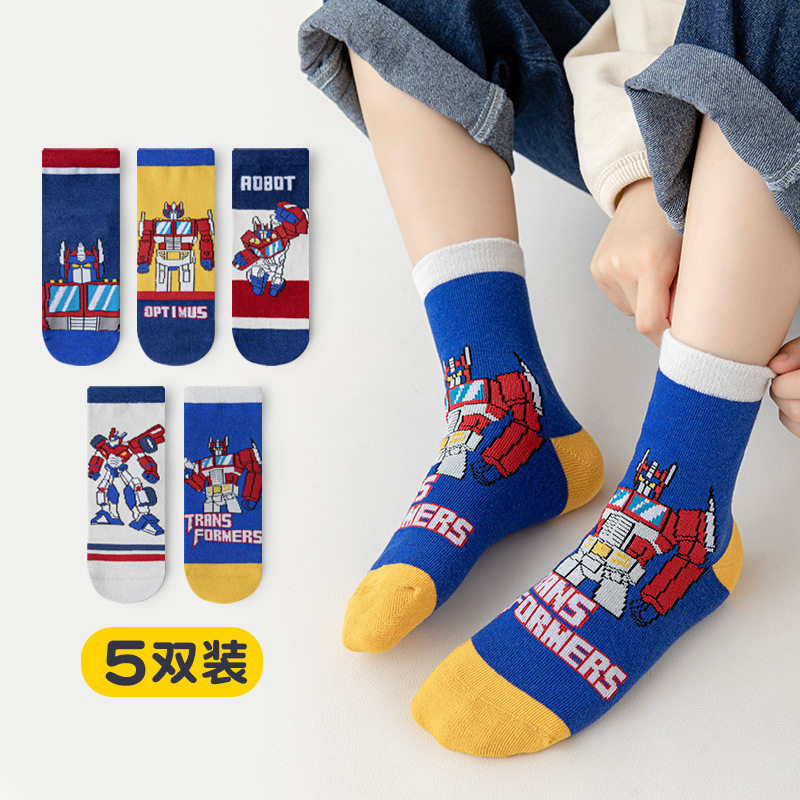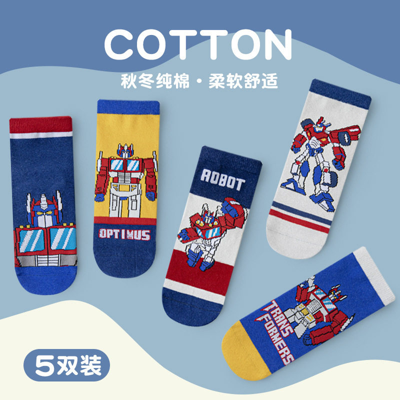 春夏季 儿童袜子纯棉男童运动袜小学生变形金刚机器人擎天柱中筒袜