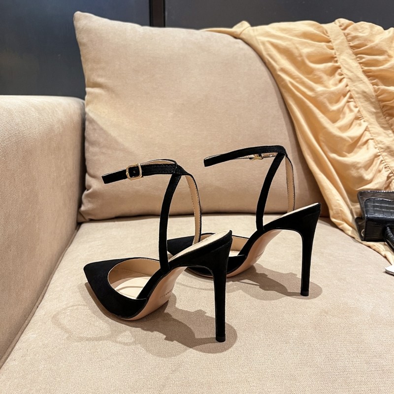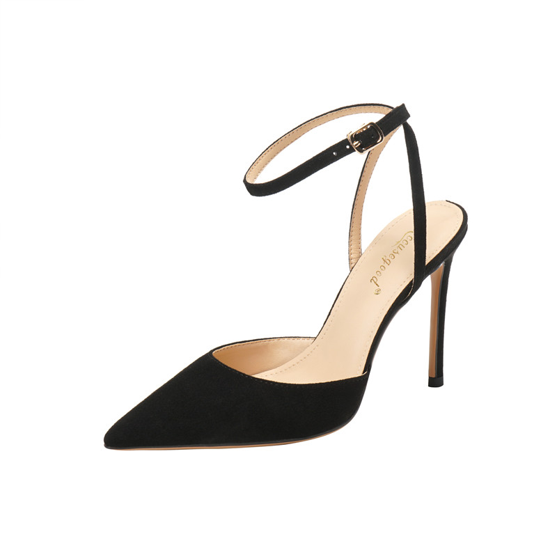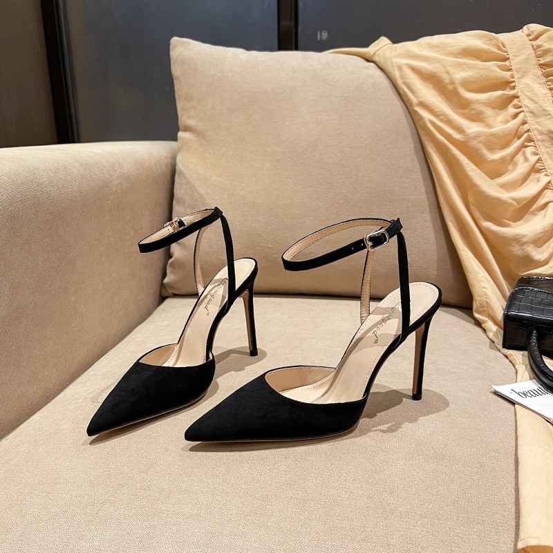 细跟包头凉鞋 2025夏季 浅口尖头后空高跟单鞋 黑色百搭中空女鞋 新款