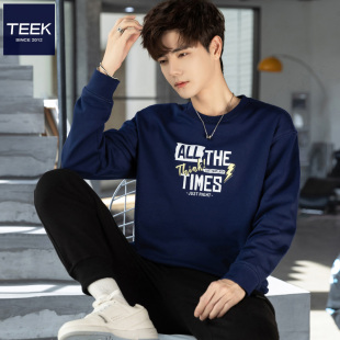 内搭长袖 TEEK春季 韩版 青少年高中学生时尚 T恤 潮流卫衣男藏青色
