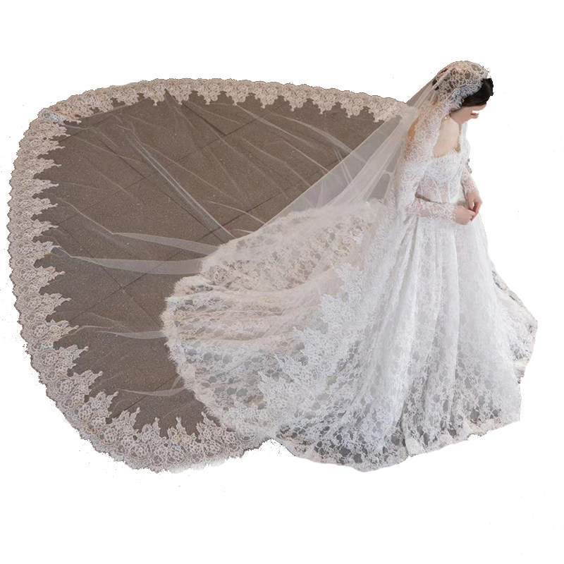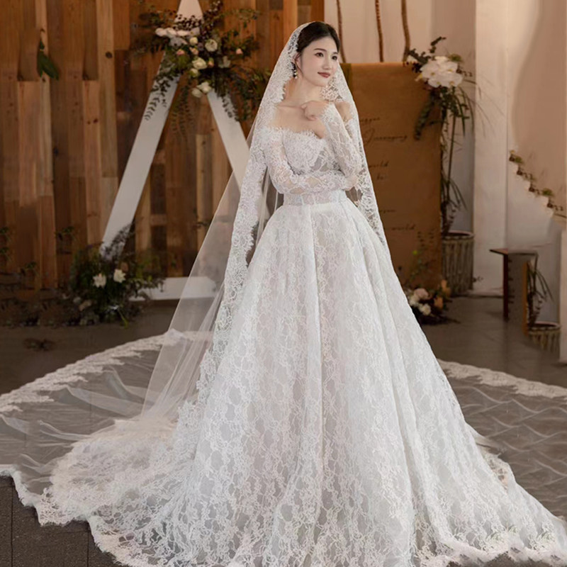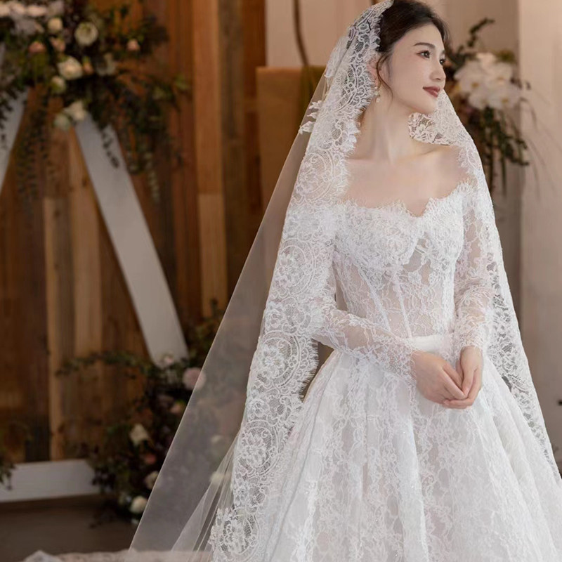 新款 复古蕾丝花边头纱样片拍照影道具楼摄影森系新娘结婚造型头饰
