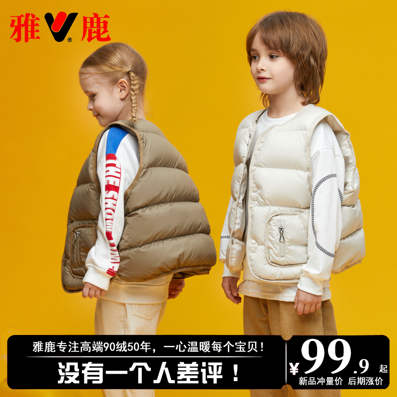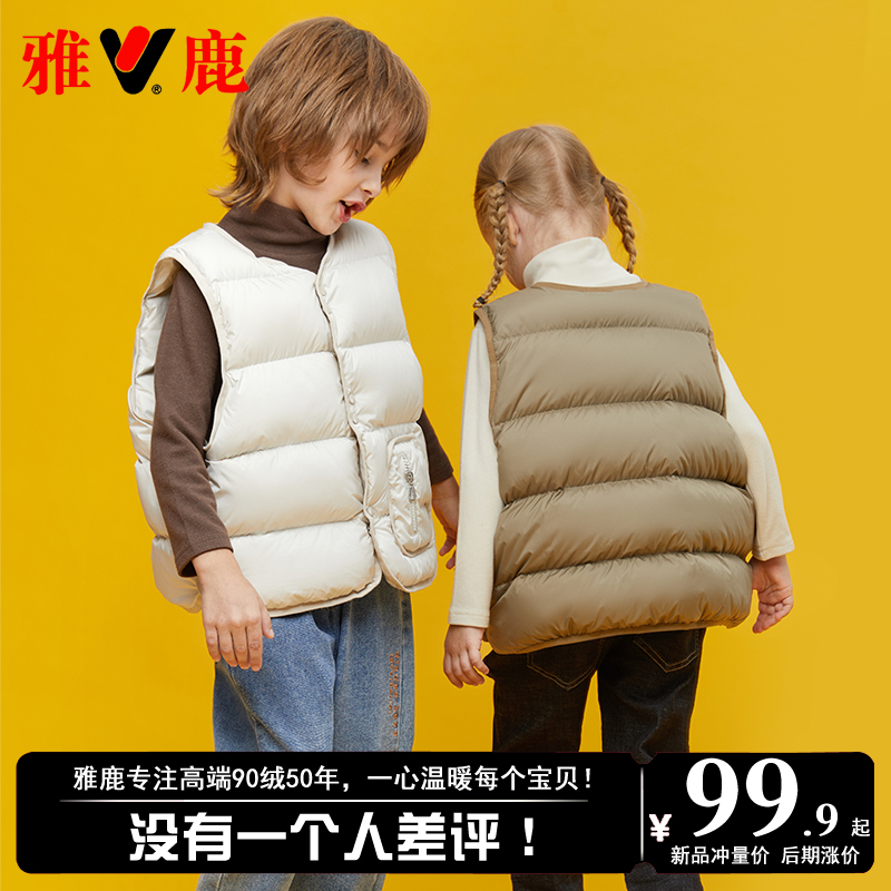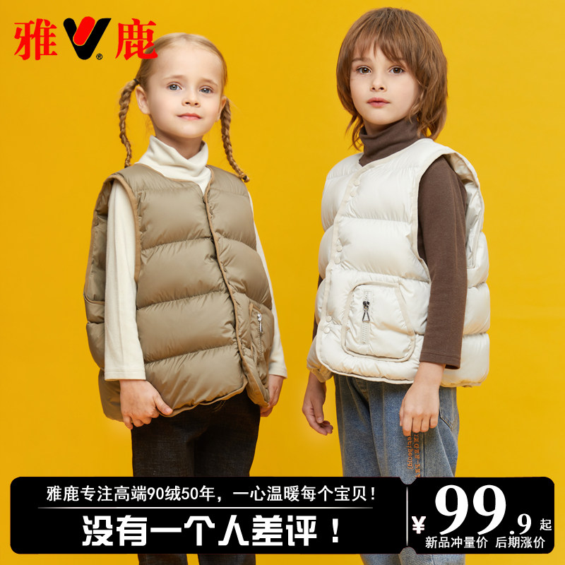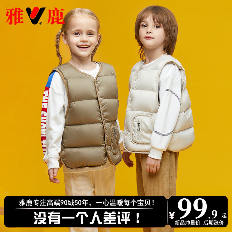 雅鹿新款 儿童羽绒马甲外穿男童女童宝宝羽绒背心马夹加厚羽绒服冬