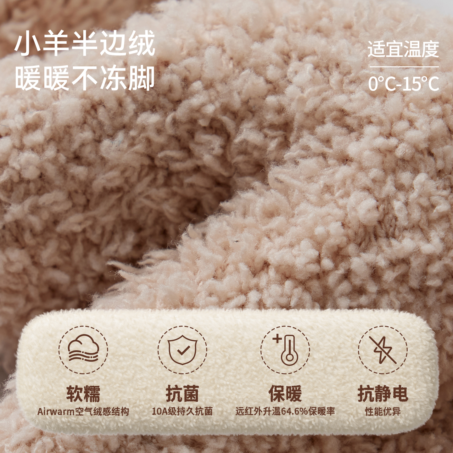 嫚熙小羊半边绒月子袜孕妇秋冬毛绒地板袜防风加绒保暖坐月子用品