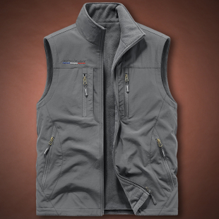 马甲男加绒春秋保暖外穿背心外套立领多口袋工装 摇粒绒双面穿马夹