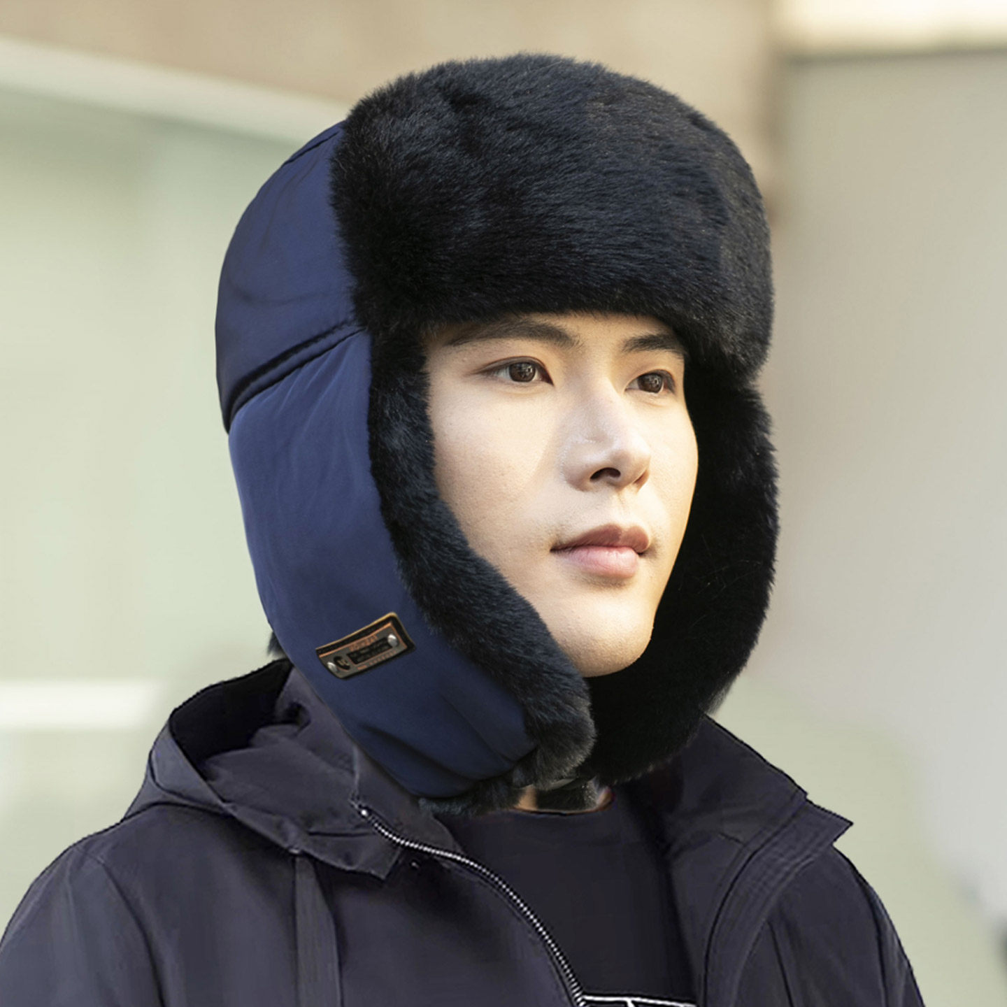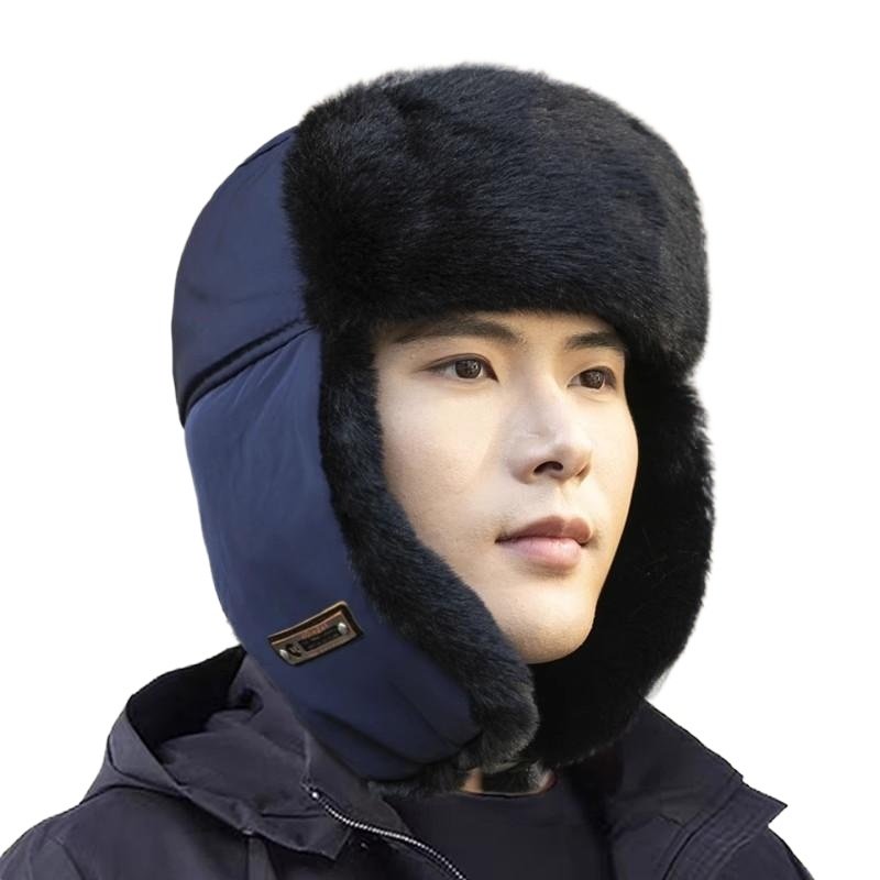 冬季 雷锋帽男防风防寒骑行保暖加厚毛绒护耳东北棉帽中老年人男帽