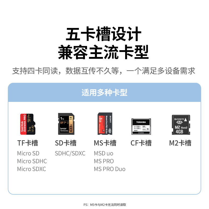 m2卡typec手机电脑车载内存通用适用于单反照相机摄影 绿联usb3.0高速读卡器五合一多功能转换器sd