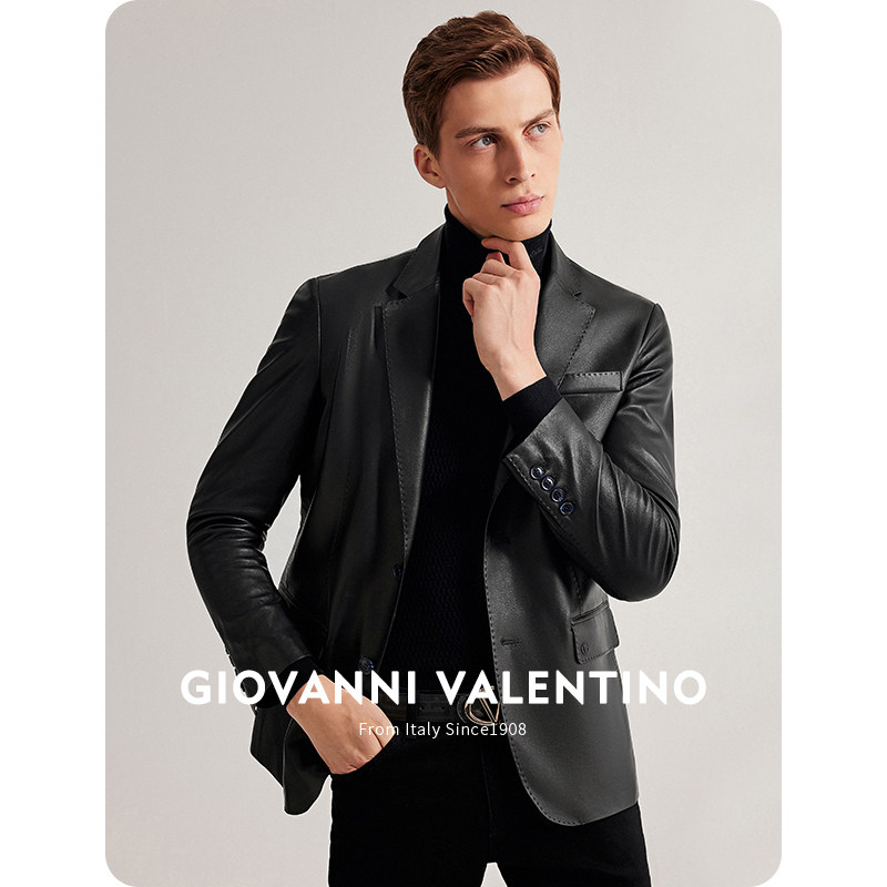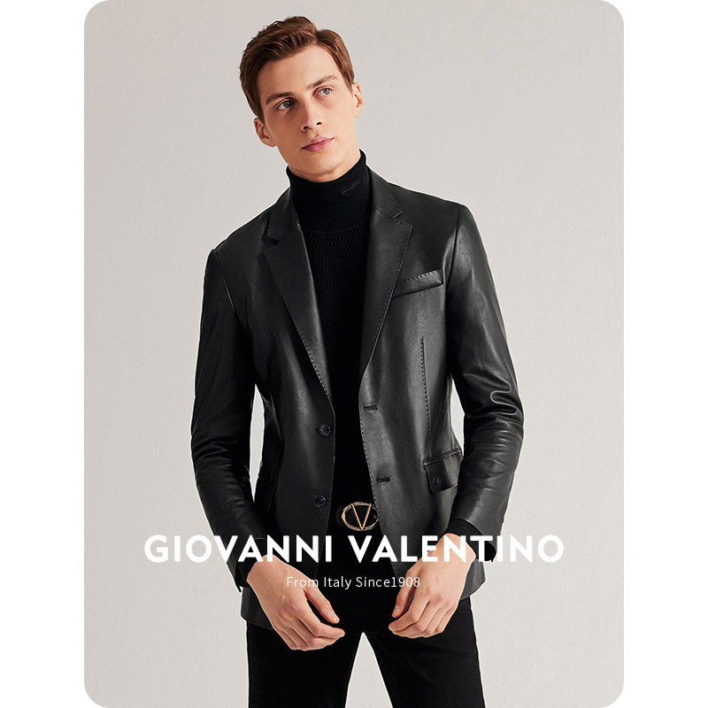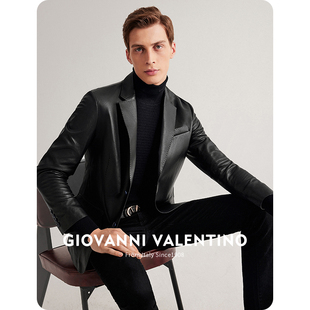 柔软头层绵羊真皮皮衣男加长款 翻领休闲简约商务尼克服夹克外套甘