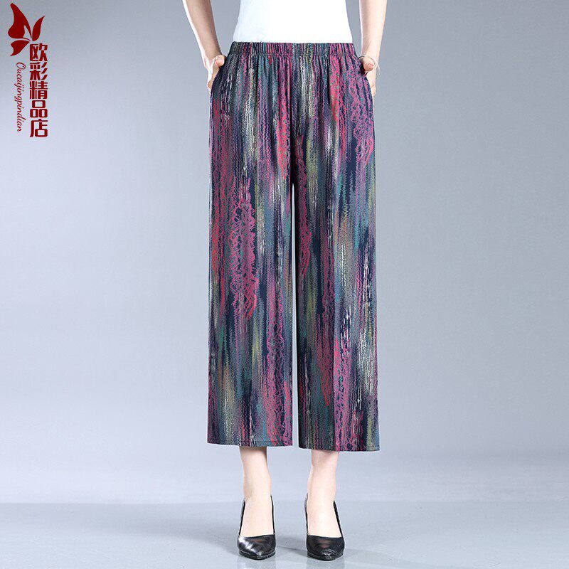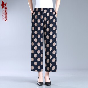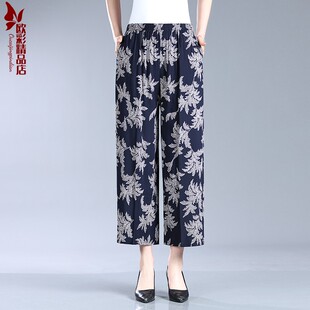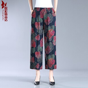 奶奶人造棉花裤 棉绸阔腿裤 休闲九分裤 中老年人妈妈大码 子 2023夏季