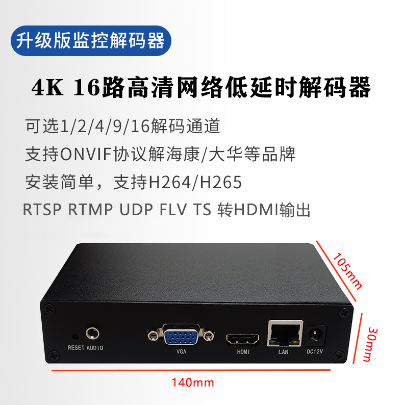 16路高清监控视频解码 器矩阵分屏拼接器H265兼容适用海康大华ONVF