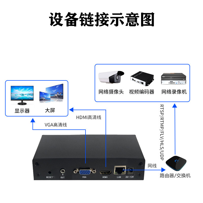 单路高清解码 网络视频解码 数字转模拟 监控解码 矩阵上墙 器