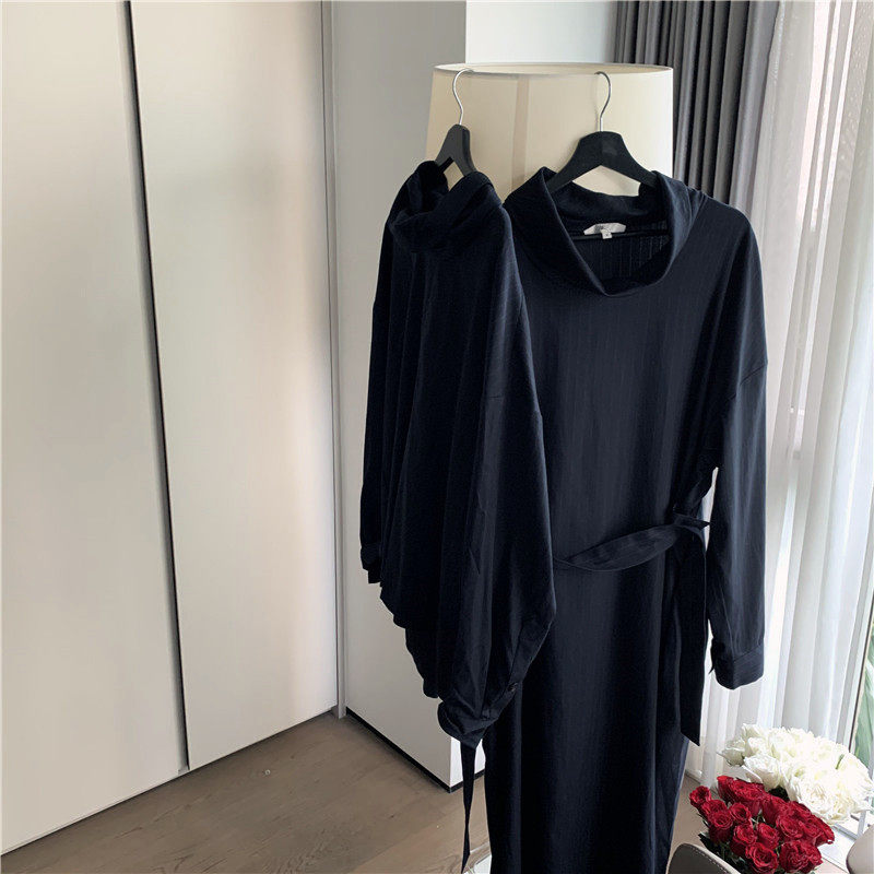 气质简约圆领黑色收腰长裙 时尚 佧茜文拼接连衣裙2025冬季 新款