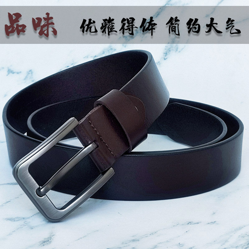 带3.3CM 潮流中年窄裤 头层牛皮男士 腰带真皮针扣皮带休闲商务韩版