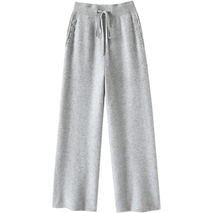 子秋冬加厚 子女外穿针织休闲直筒阔腿裤 尽致简约时髦 纯山羊绒裤