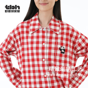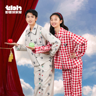 tbh野兽派家居熊猫嘭嘭加厚全棉法兰绒家居服套装 可外穿情侣睡衣