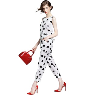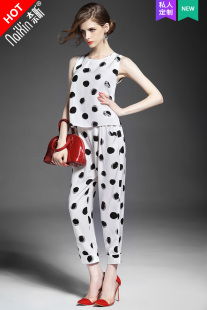 suit波点印花修身 6005新品 背心上衣 长裤 奈昕个性 套装 化私人定制