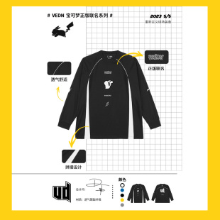 维动宝可梦联名长袖 篮球训练服运动跑步透气上衣V 投篮服T恤男美式
