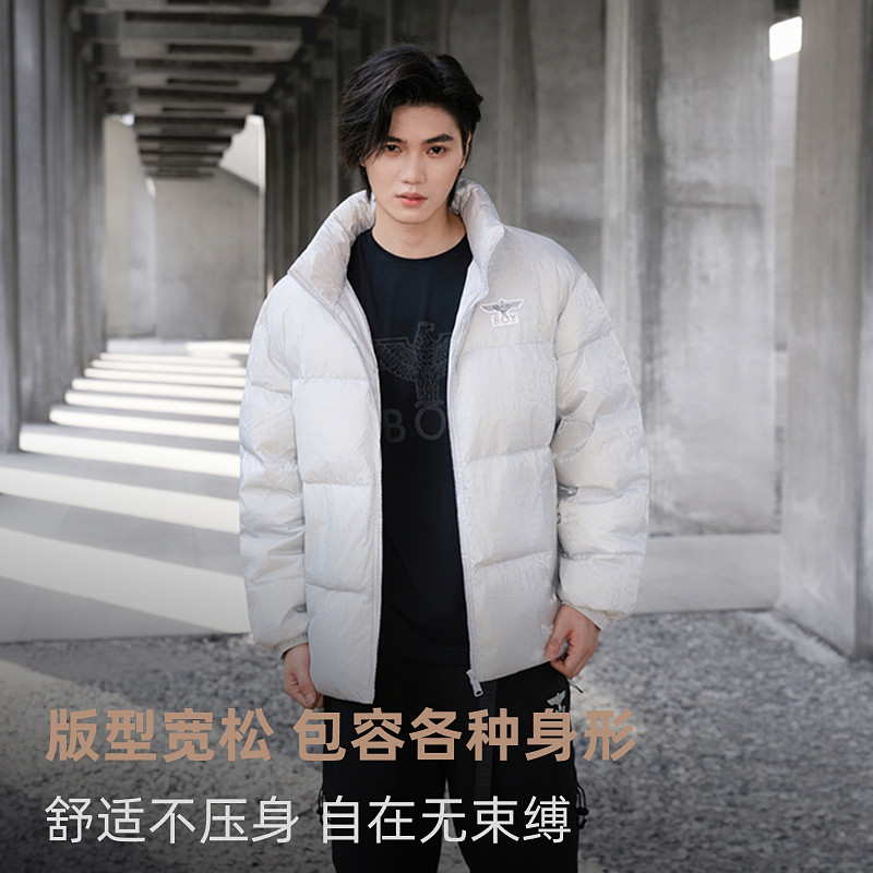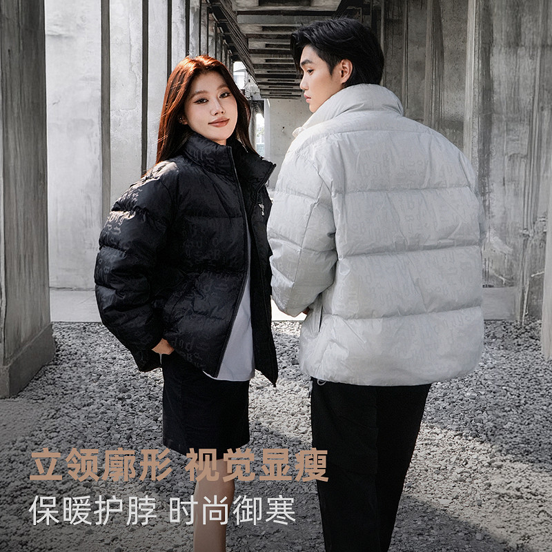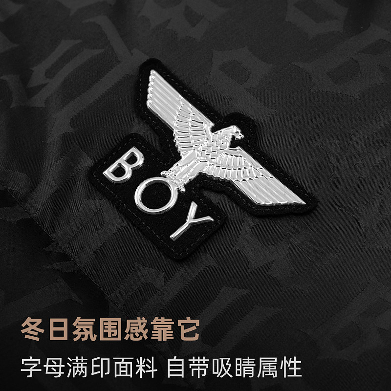 BOYLONDON黑色立领朋克90绒羽绒服冬男女外套N28063 夜光序曲