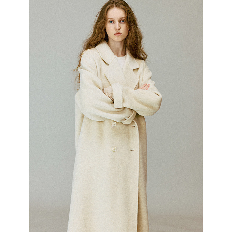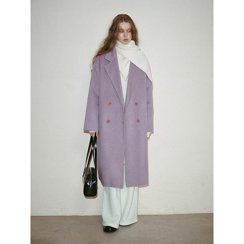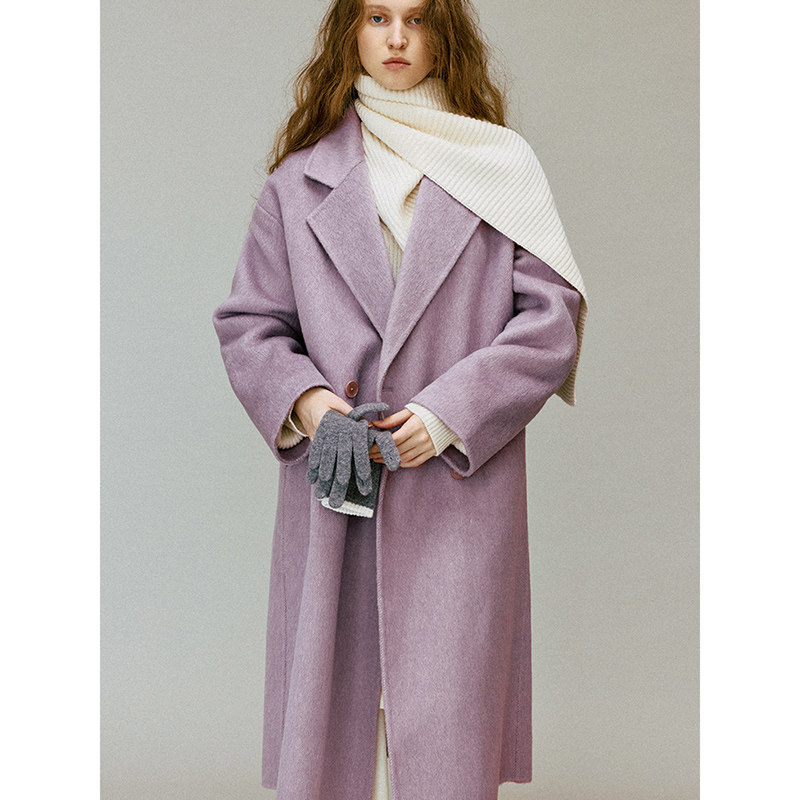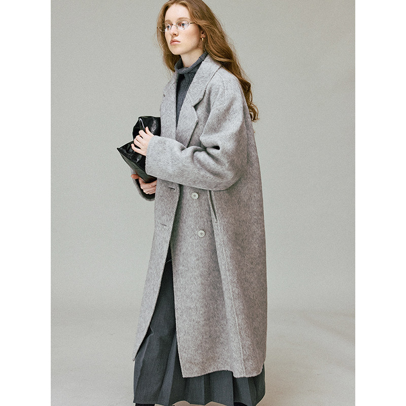 popchrio 女冬 驼绒羊毛廓型高级感双面呢子大衣无羊绒外套中长款