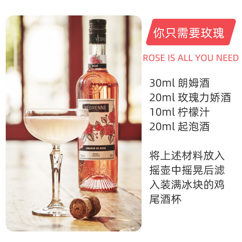 维布伦尼玫瑰味力娇酒甜酒利口酒酒吧调酒女生鸡尾酒法国进口洋酒