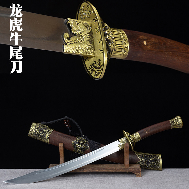 龙泉刀剑一体锻打龙虎宝刀高锰钢牛尾刀长款 户外防身冷兵器未开刃
