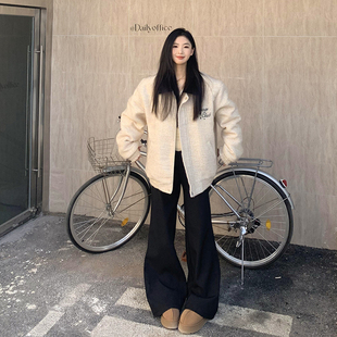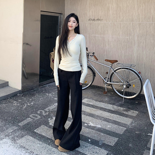 女秋冬高级感休闲宽松拖地裤 橘子树在哪儿黑色低腰加绒喇叭西装 裤