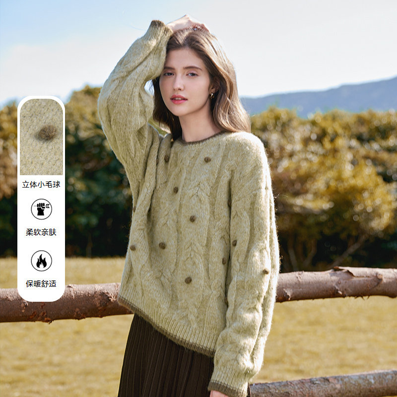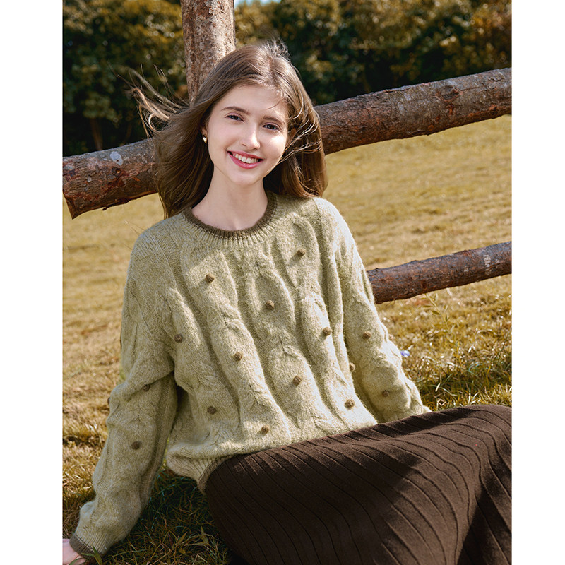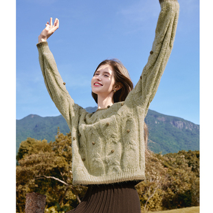 高级感上衣宽松打底针织衫 圆领100%纯山羊绒衫 女高端毛衣秋冬新款