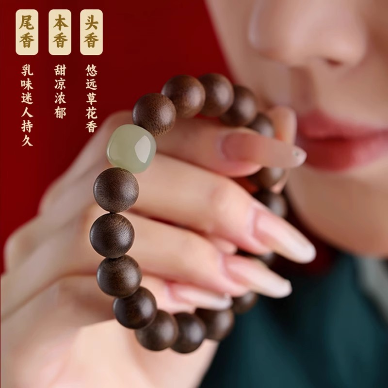 庆祥泰天然绿檀木手串沉香老山檀木质女男士 文玩檀香佛珠盘玩手链