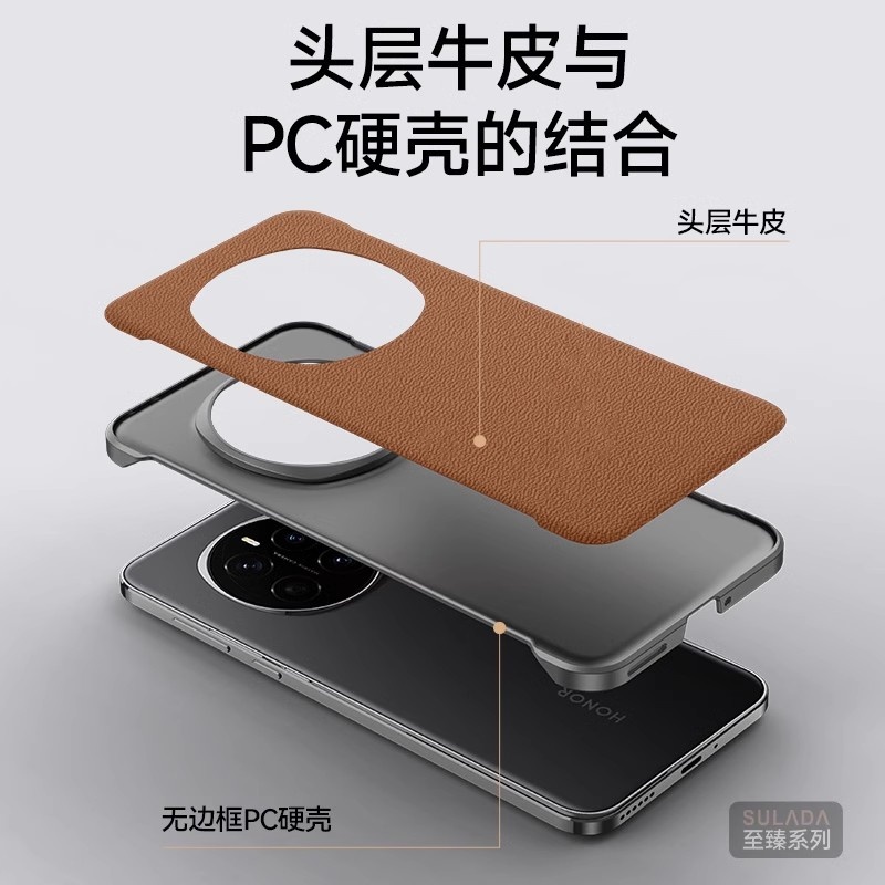 真皮无边框半包磨砂适用荣耀magic7手机壳新款 高级感头层牛皮magic7pro防摔镜头膜手机套magic轻薄散热保护套