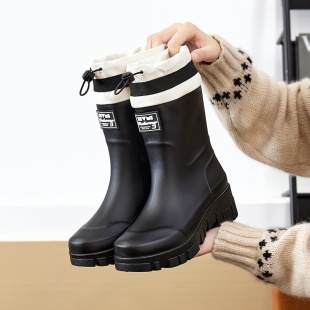 雨靴女款 胶鞋 中筒厚底内增高水鞋 防水靴工作鞋 不累脚防滑雨鞋 新款