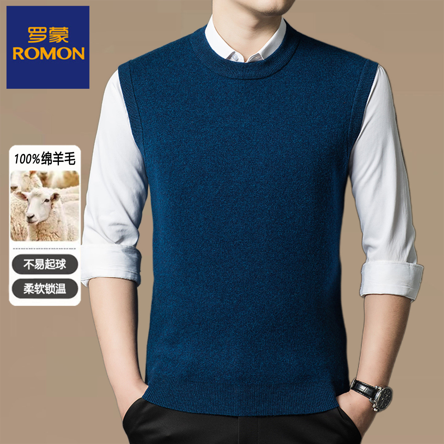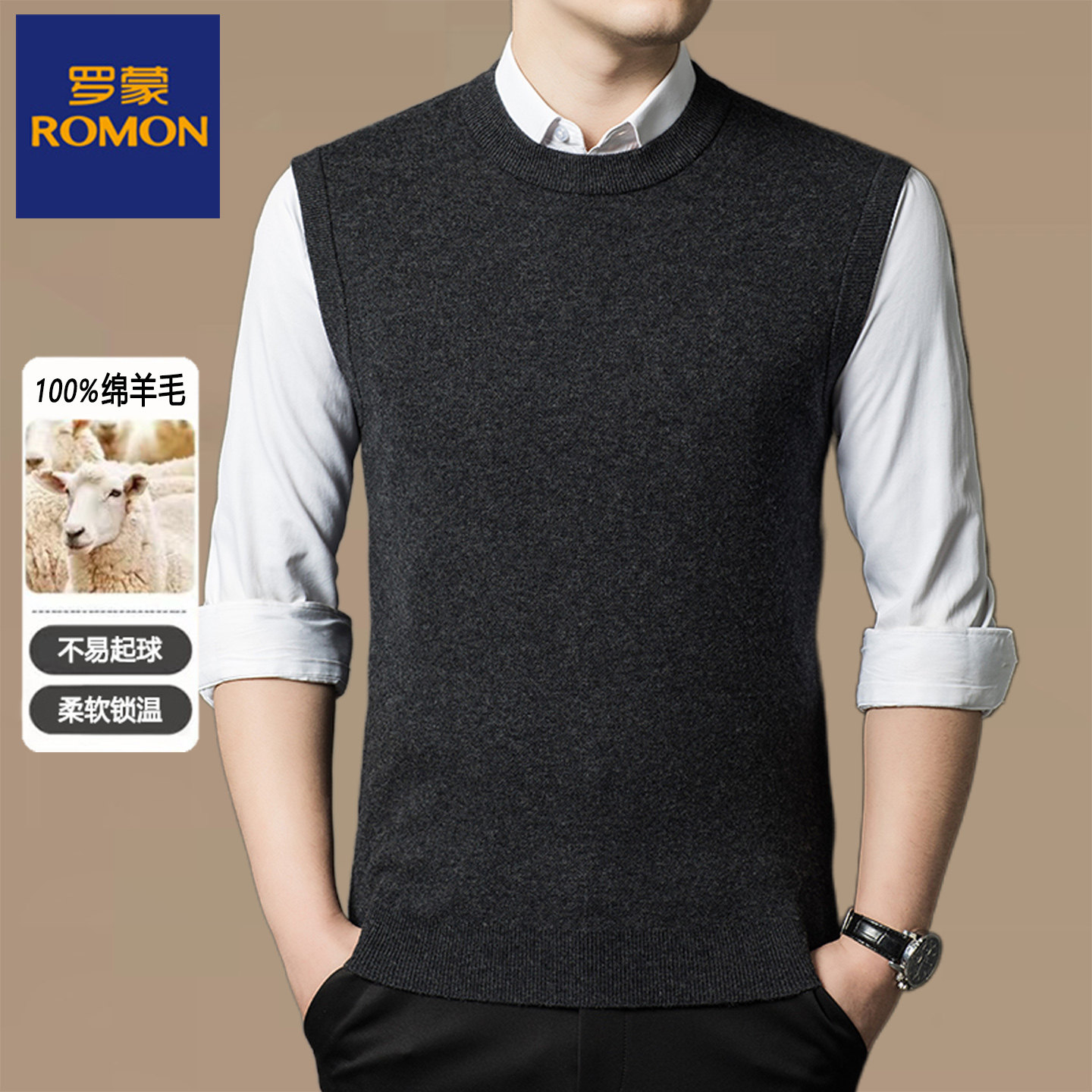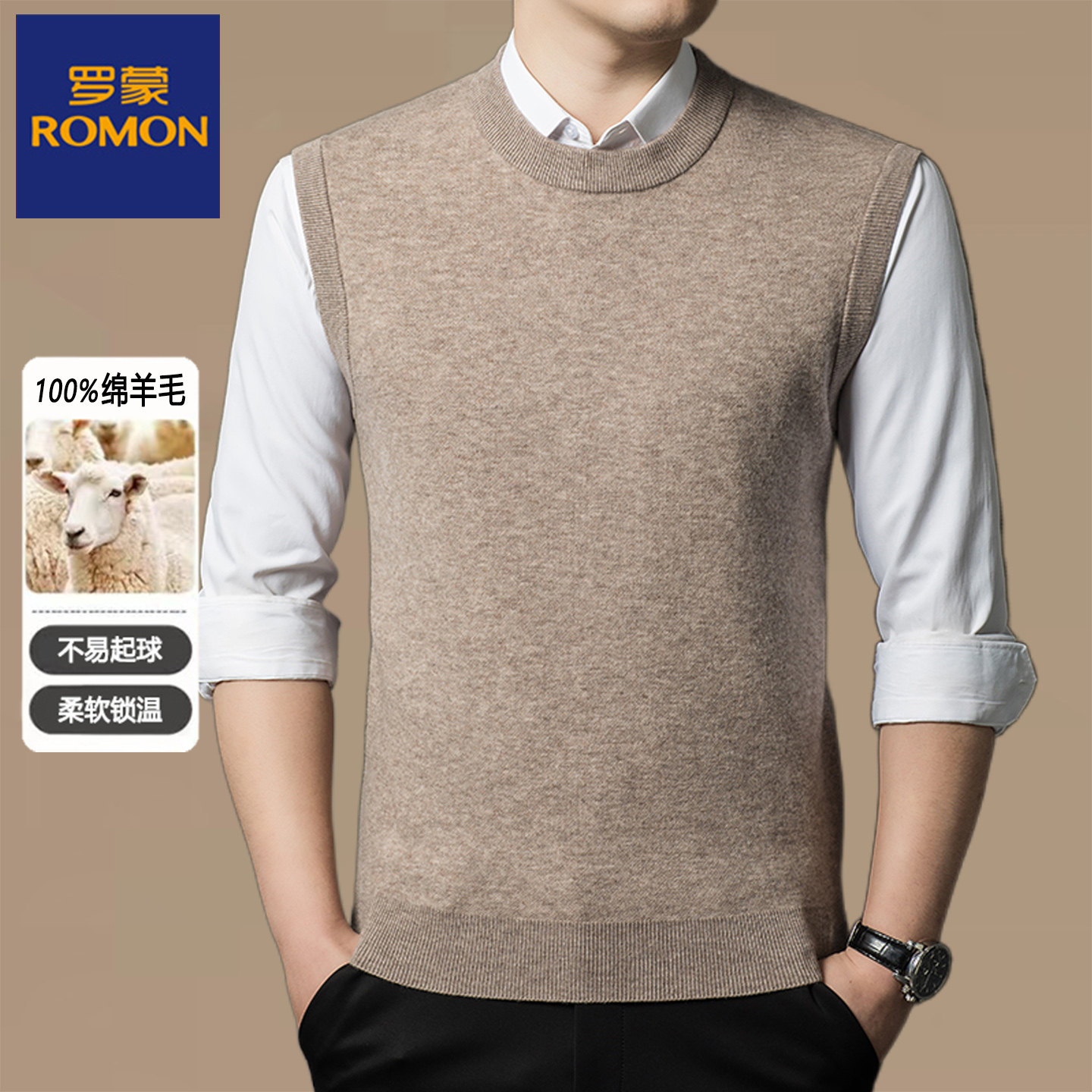 圆领纯羊毛背心马甲厚款 男士 保暖纯色针织毛衣坎肩 秋冬季 罗蒙男装
