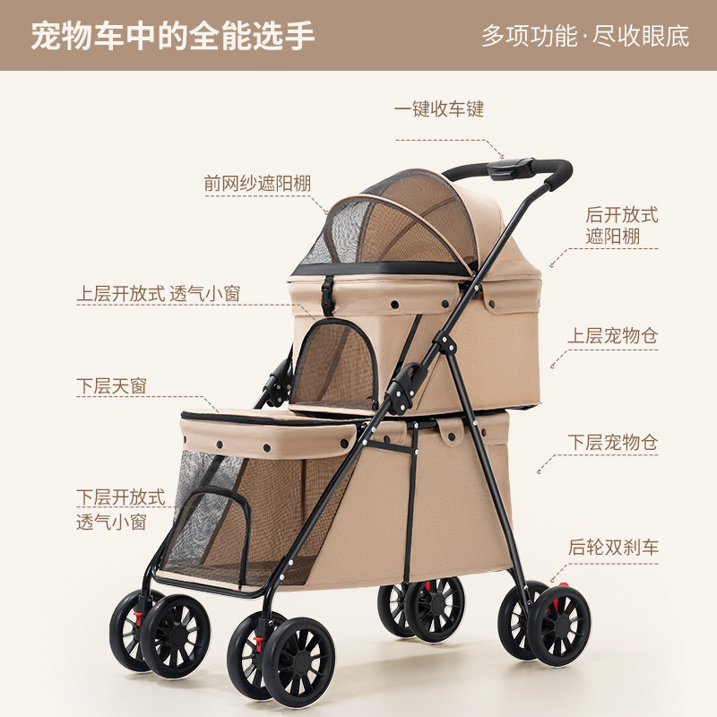 Nakebella双层宠物推车轻便可折叠便携猫咪狗狗犬外出户外小推车