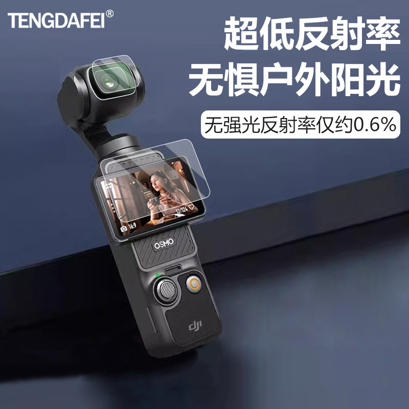腾达飞TENGDAFEI用DJI大疆pocket3钢化膜屏幕相机膜全屏覆盖osmo前置相机镜头屏幕玻璃高清防爆保护贴膜
