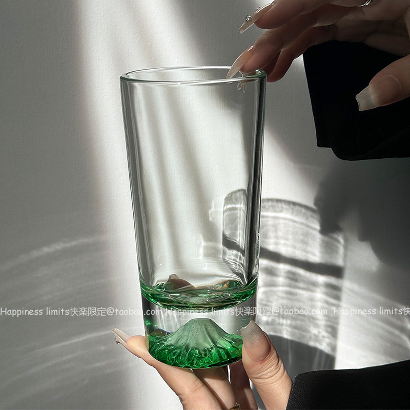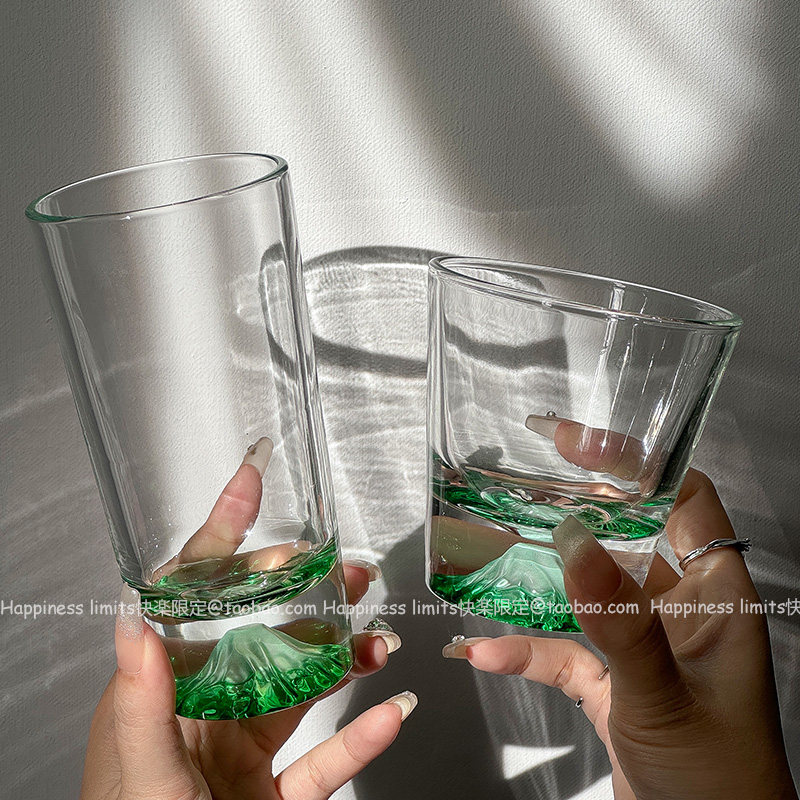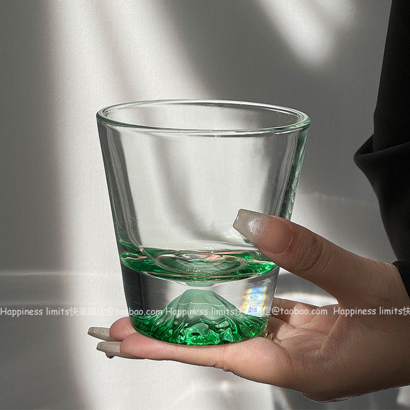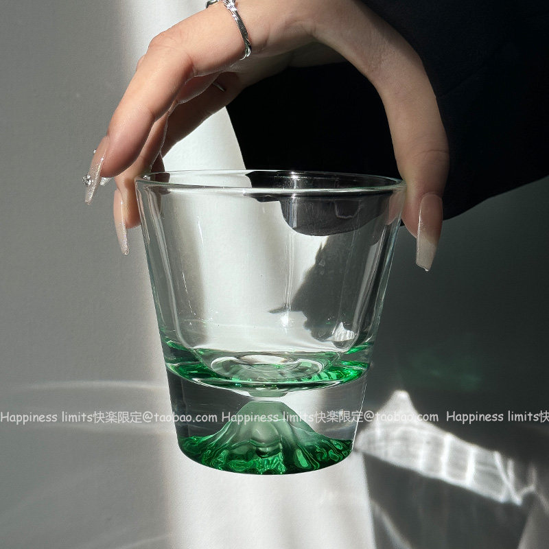 ins风绿色富士山玻璃杯中古观山杯威士忌杯洋酒杯家用喝水杯茶杯