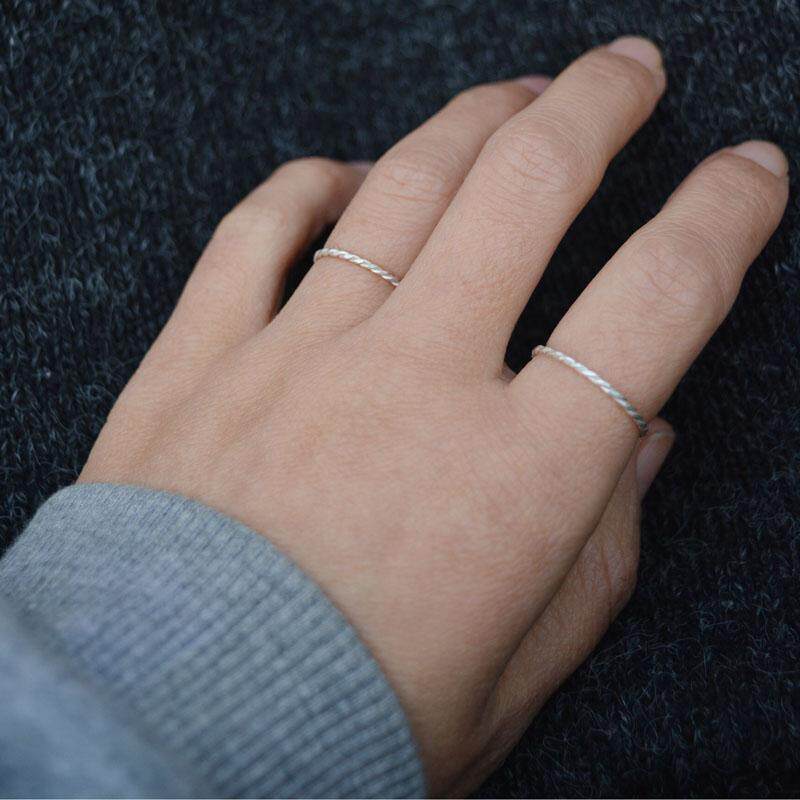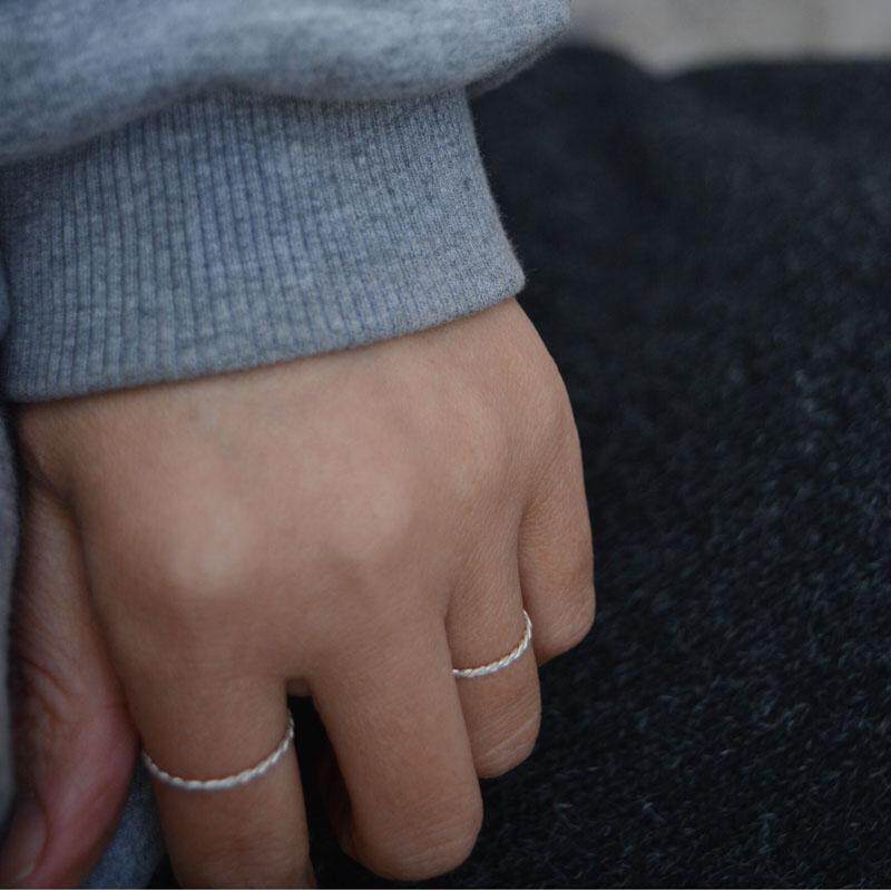 银戒指1mm999足银手工编织麻花素银戒指 线戒百搭 指环简约开口
