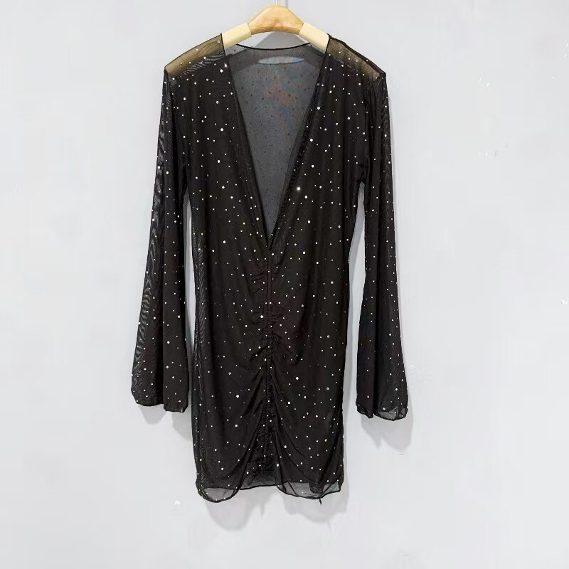 Amber外单三点式 防晒网披温泉带胸垫 分体泳衣女士比基尼性感长袖