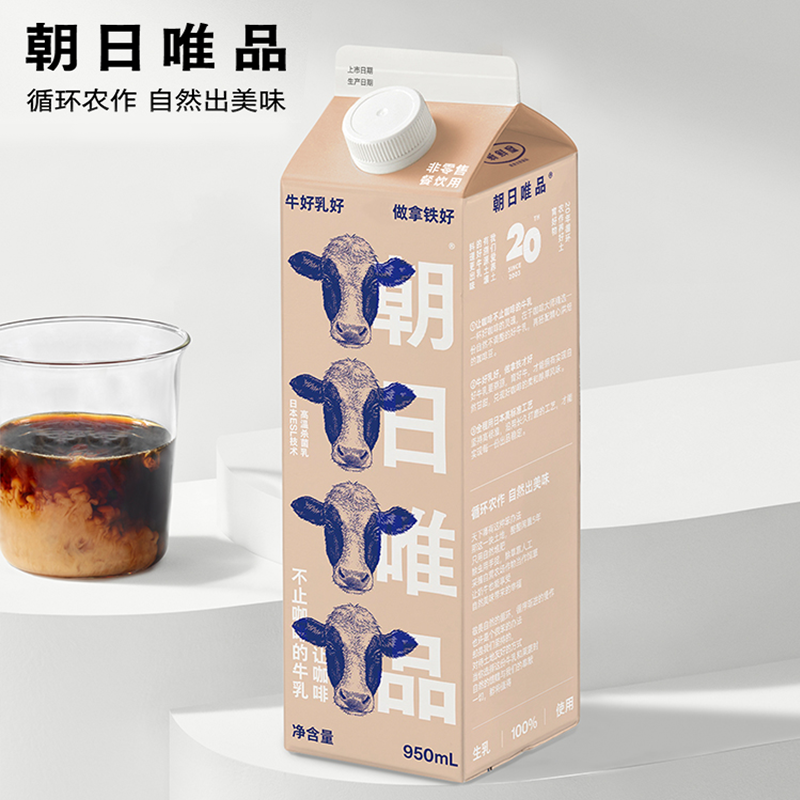 朝日唯品生牛乳咖啡专享餐饮商业用冷藏奶950ml 整箱12盒