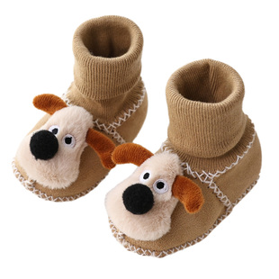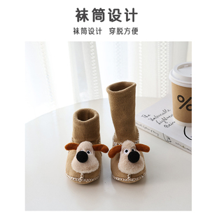 小月龄男女宝宝脚套一体鞋 袜保暖棉鞋 婴儿软底加绒卡通鞋 2025冬季