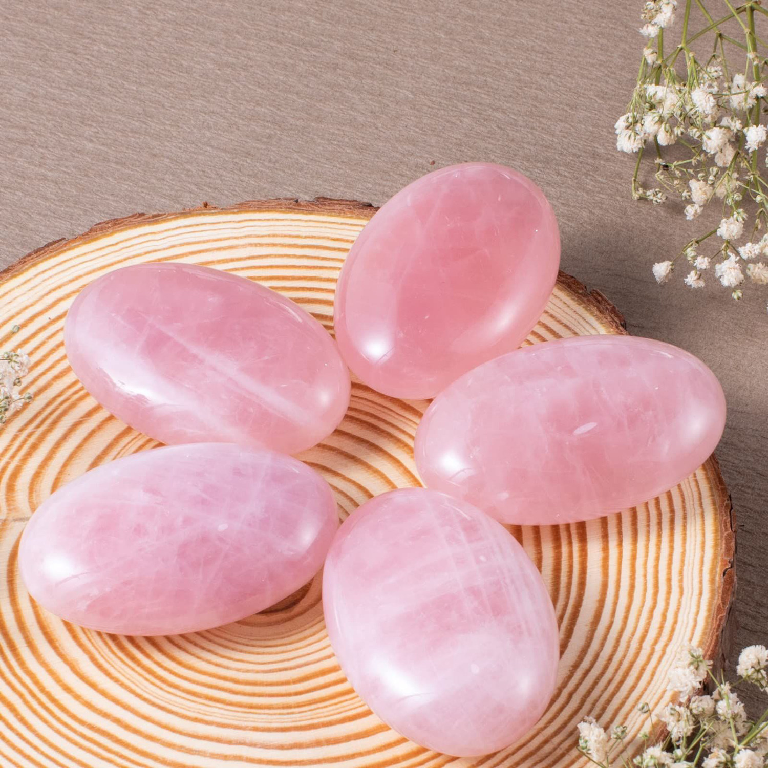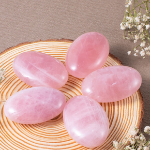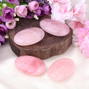 椭圆玫瑰粉晶手把件天然原石粉水晶手握光滑肥皂石摆件粉色石头