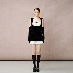 森女部落古着感叠穿毛绒背心裙2025新款 连衣裙女秋冬 百搭刺绣无袖