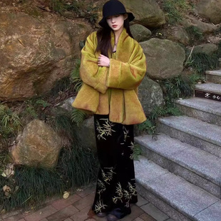 金玉貂环保皮草中古风复古小众毛绒外套 苔原绿加厚版 售完不补