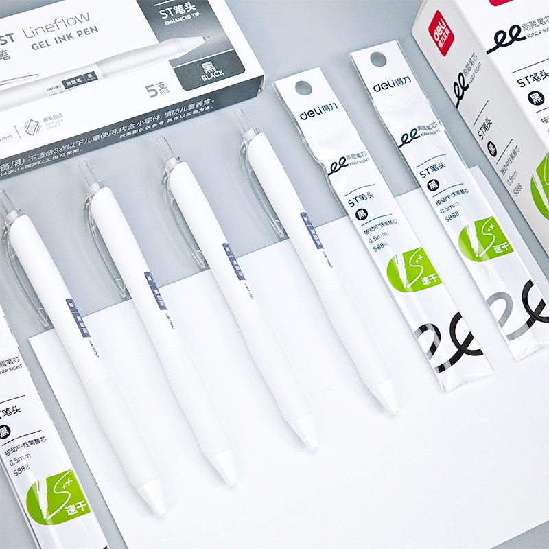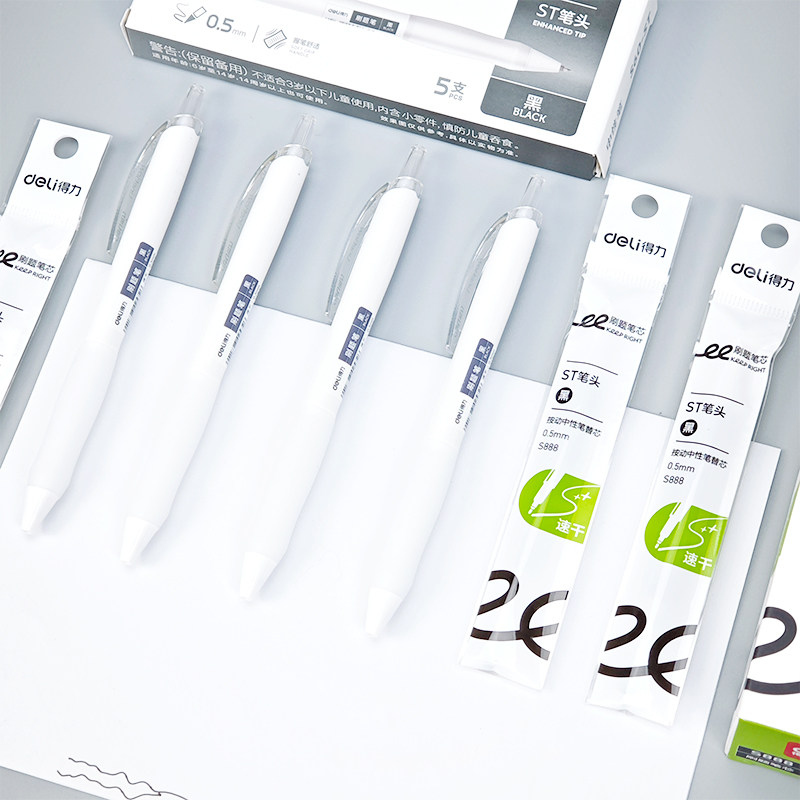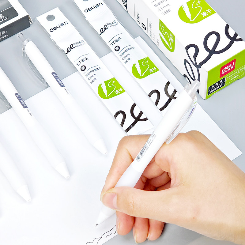 得力S60 ST笔头速干顺滑按动中性笔0.5mm考试黑色刷题签字笔水笔