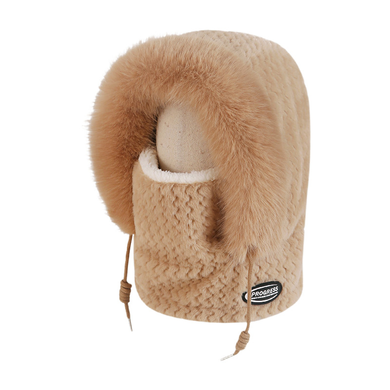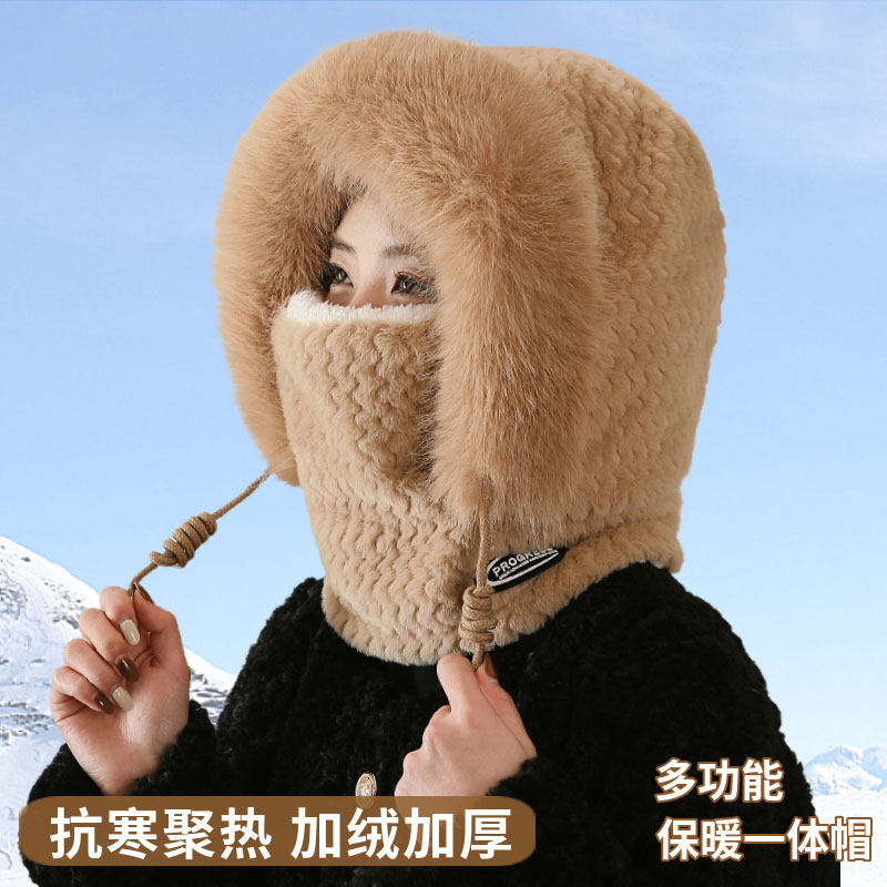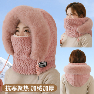 新款 骑车防风防寒电动车保暖套头帽 加绒加厚帽子围脖一体女秋冬季