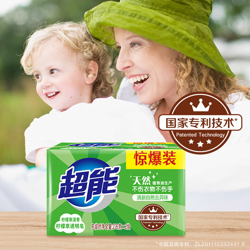 2祛味不伤手洗衣皂家用清洗肥皂 透明皂柠檬草香味260g 超能