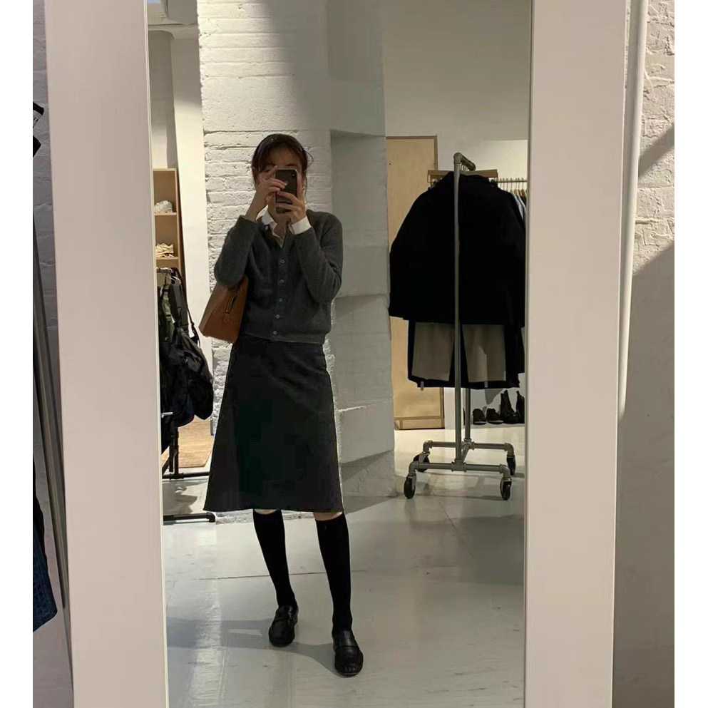 秒发 半身裙女 闭眼入2025秋冬韩国OUNCE气质纯色高腰显瘦中长款