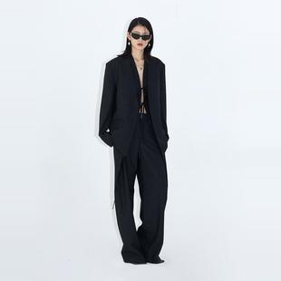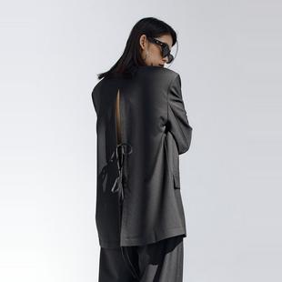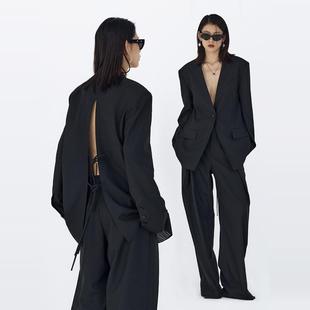 外套 黑色镂空开衩宽松西装 女春设计感西服 后背系带 ourhour