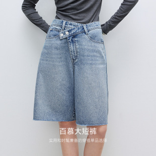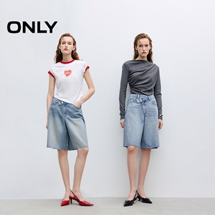 牛仔裤 错位腰头高腰五分裤 ONLY奥莱春夏新款 女 百慕大短裤